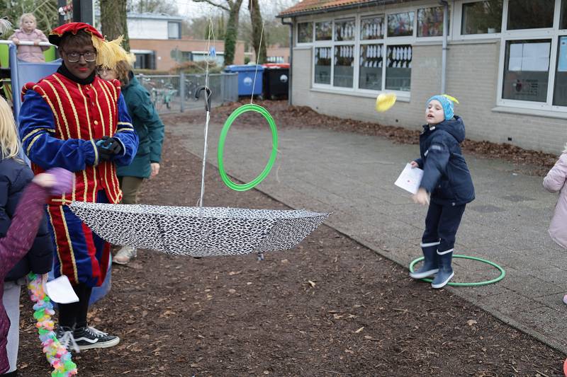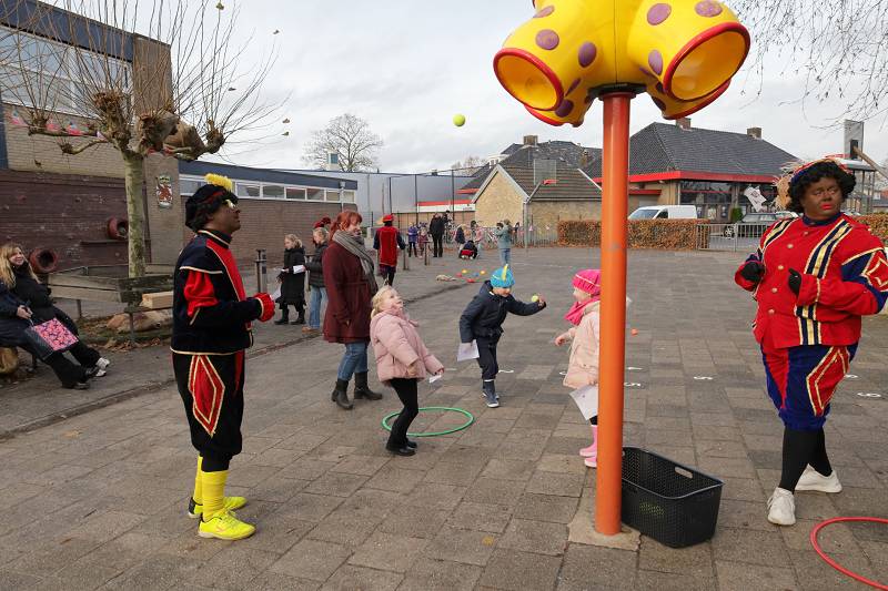 | Zaterdagmiddag werden er op het plein van basisschool de Riemsloot sinterklaasspelletjes georganiseerd. Tientallen kinderen deden hier aan mee. Zo konden op verschillende manieren met pakjes worden gegooid en kon er een lastig parcours met ringen worden afgelegd. De kinderen deden dit allemaal met de hulp van de pieten, ook sinterklaas was aanwezig met zijn hoofdpiet. Als laatste werd er gedanst op het pietenlied. |