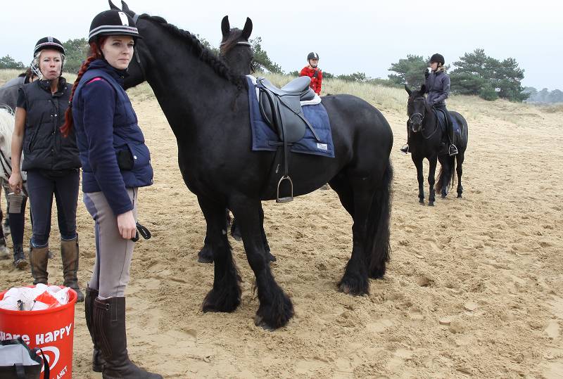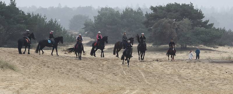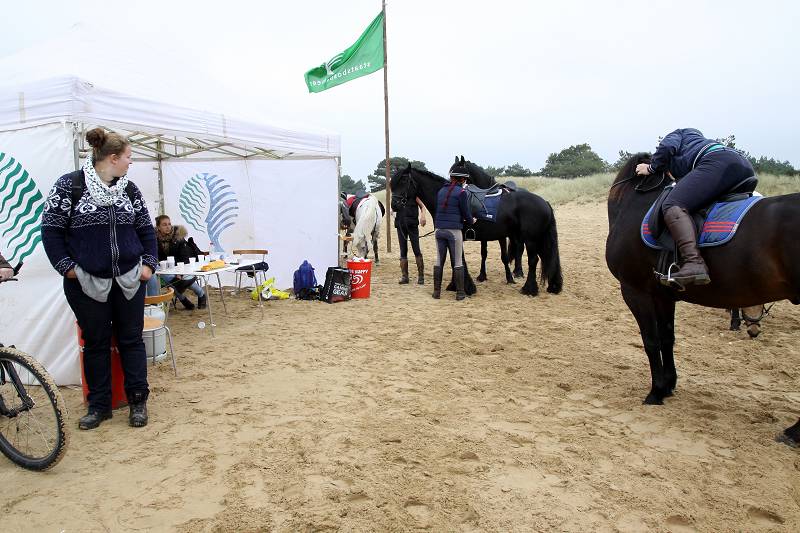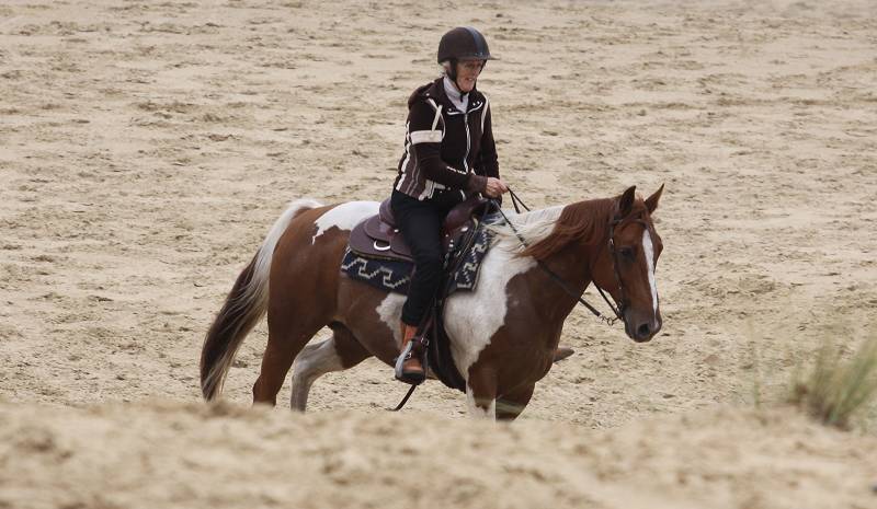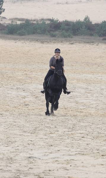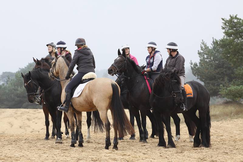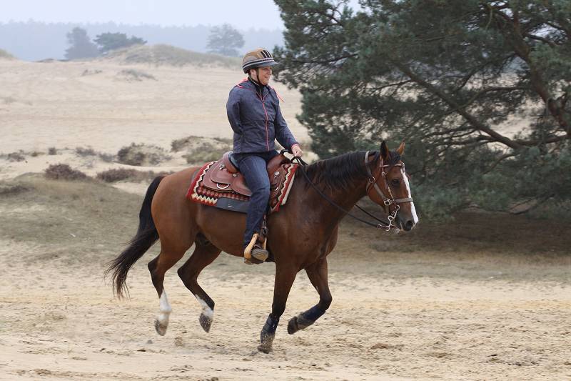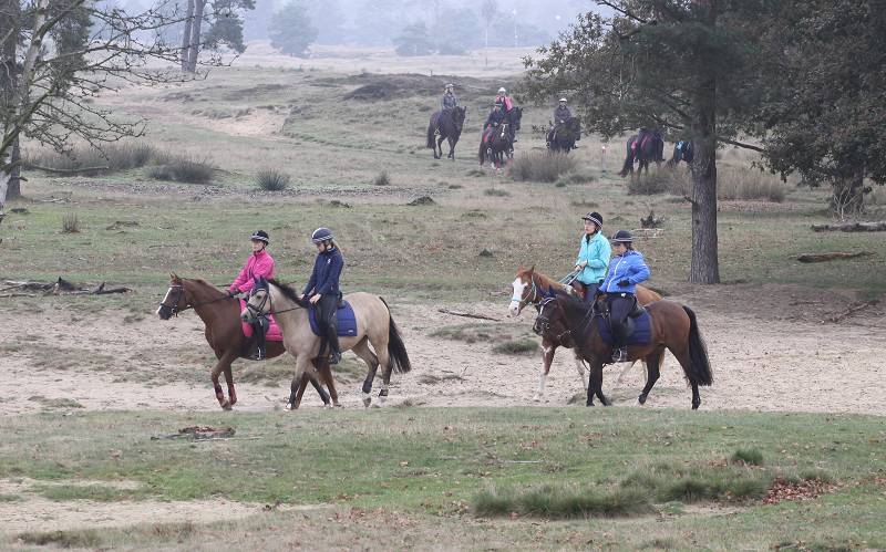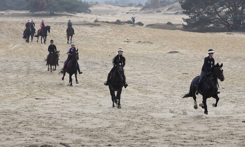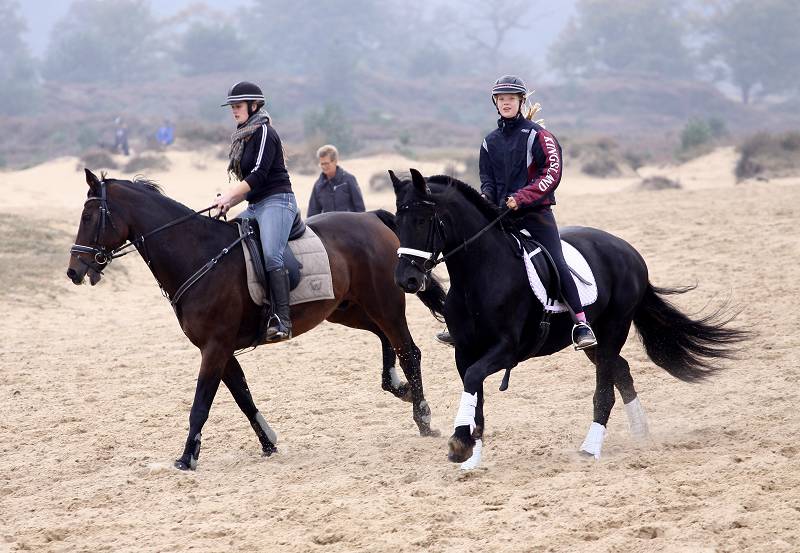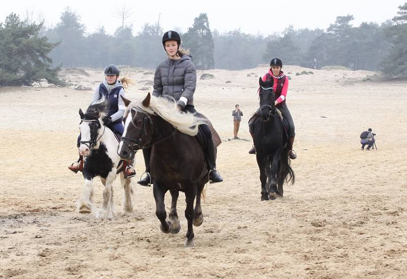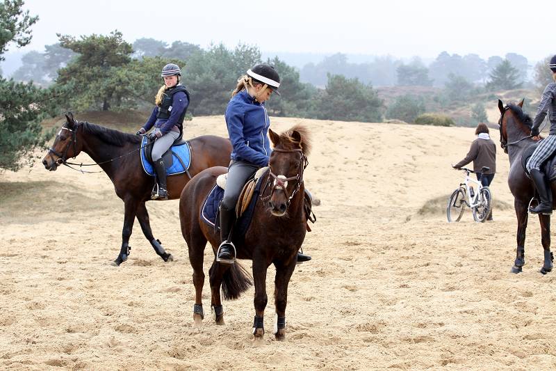 | Zondag vond voor de derde keer de Autumn desert trail op de Kale Duinen plaats. Deze rit werd georganiseerd met de bedoeling het stuifzand van de grote zandoppervlakte ook in de winterperiode weer te laten stuiven. Door lage temperaturen kan het zand niet voldoende stuiven en gaan er mossen groeien die niet thuis horen in dit unieke stuifzandgebied. Doordat de paarden het zand omwoelen kan het worden losgemaakt en weer gaan stuiven. 330 liefhebbers deden aan deze 25 kilometer lange rit mee. Op ongeveer de helft van de tocht had Staatsbosbeheer een tent neergezet en kon een beker warme chocolademelk worden gedronken. Hier kwamen ook de reacties van de ruiters los, gaaf, prachtig en heel bijzonder waren de reacties die bij de chocotent werden gehoord. Aan de tocht was ook een spelelement gekoppeld, op bepaalde punten kon men vragen beantwoorden wat betrekking had op de omgeving van de Kale Duinen. |