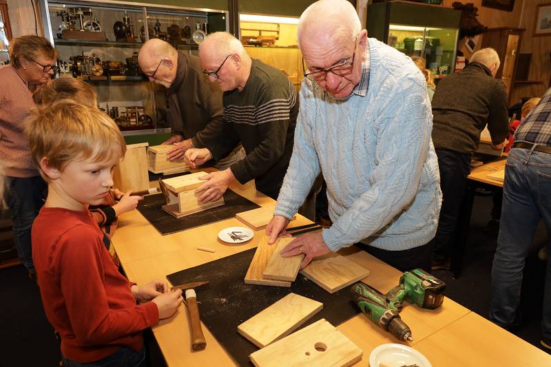 | Terwijl de voorlopig laatste sneeuwresten buiten razendsnel wegsmolten, werd er afgelopen zaterdagmiddag in de Hoolten Klinte, het verenigingsgebouw van de Historische Vereniging Appelscha e.o. al weer volop getimmerd aan nieuwe vogelhuisjes voor onze gevleugelde vriendjes.