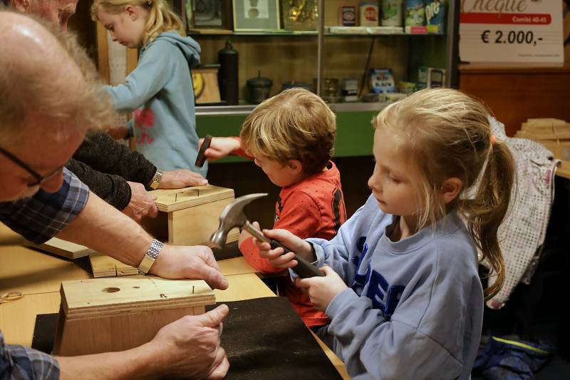 Schooljeugd vanaf 6 jaar timmerde er, al dan niet geholpen door leden van de technische dienst, lustig op los met als resultaat een mooi vogelhuisje dat de kinderen mee naar huis mochten nemen.