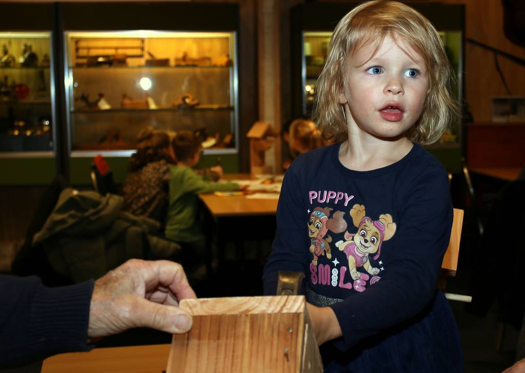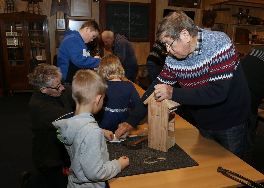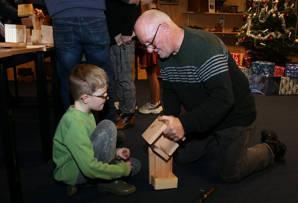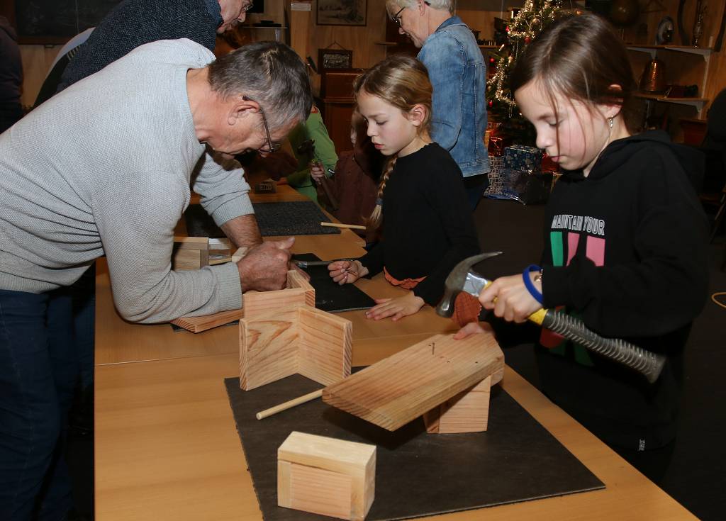 | 15 kinderen kwamen zaterdagmiddag vogelhuisjes bouwen in de Hoolten Klinte. Ze werden daarbij geholpen door leden van de historische vereniging, na veel getimmer waren de vogelhuisjes klaar.Na dit alles kreeg iedereen een glaasje ranja. De vogels in Appelscha zitten deze winter er dus weer warmpjes bij. |