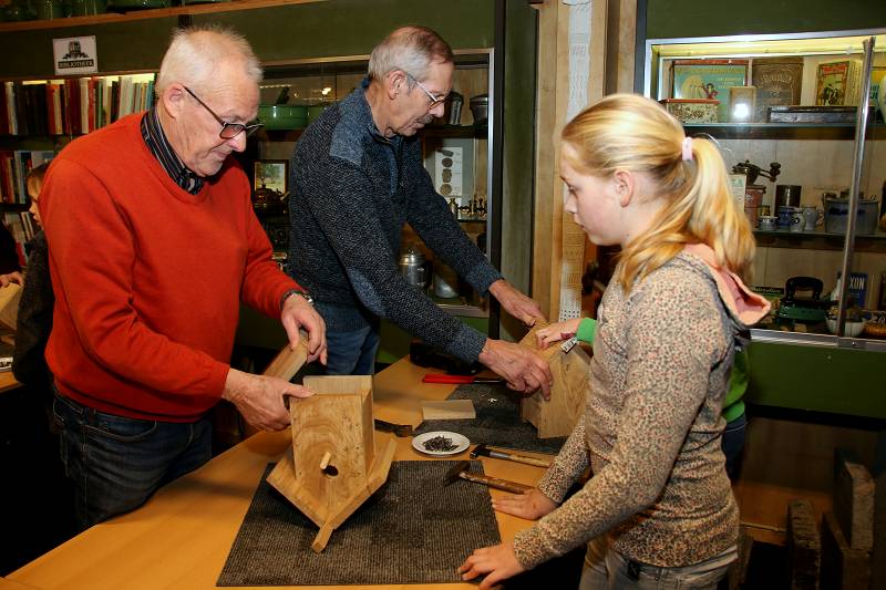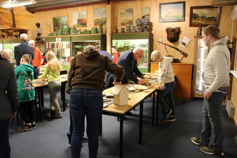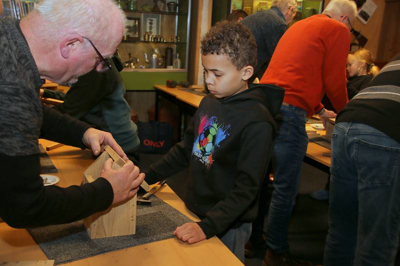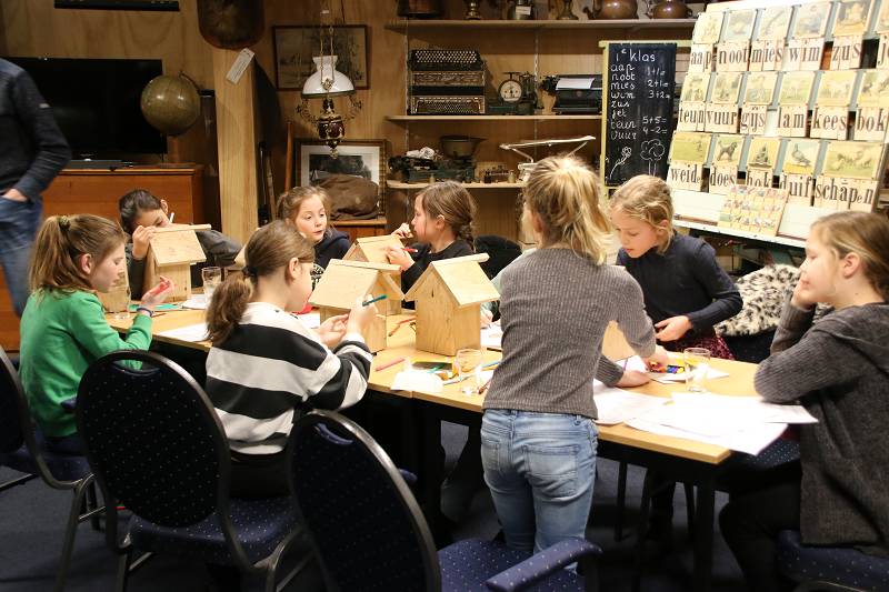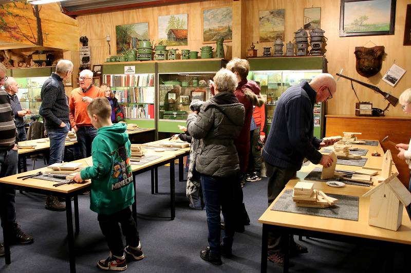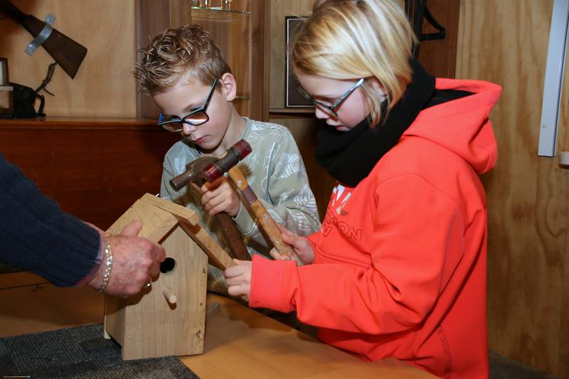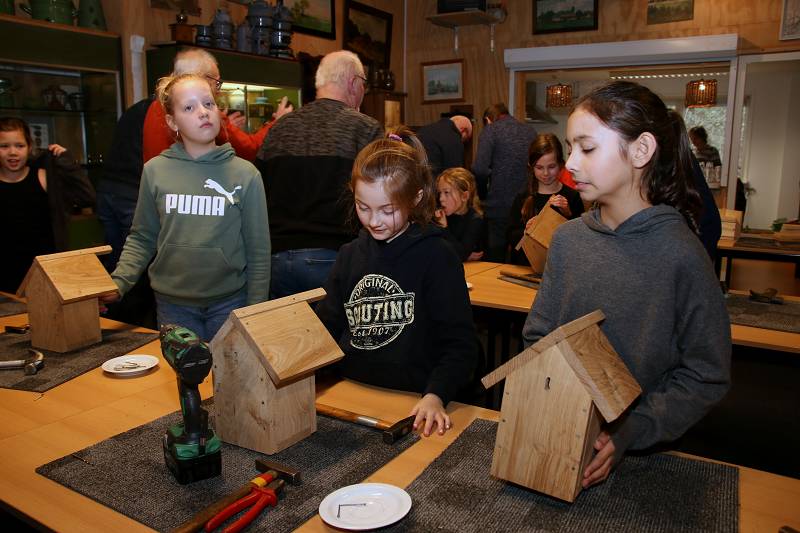 | 25 kinderen kwamen zaterdagmiddag vogelhuisjes bouwen in de Hoolten Klinte. Ze werden daarbij geholpen door leden van de historische vereniging, na veel getimmer waren de vogelhuisjes klaar en werden er nog en werden ze verder met opgeleukt met stickers en gekleurd met stiften. Na dit alles kreeg iedereen een glaasje ranja. |