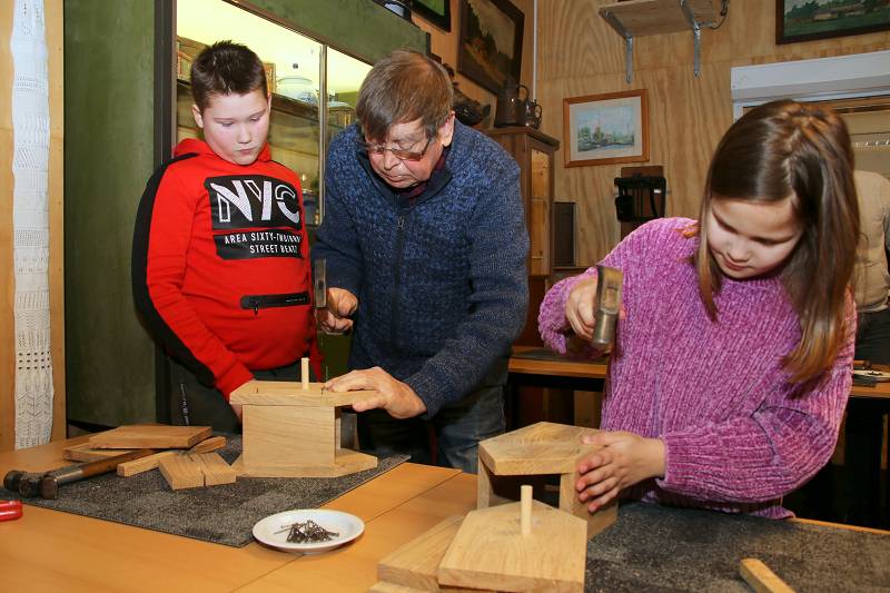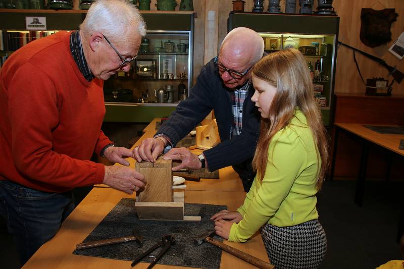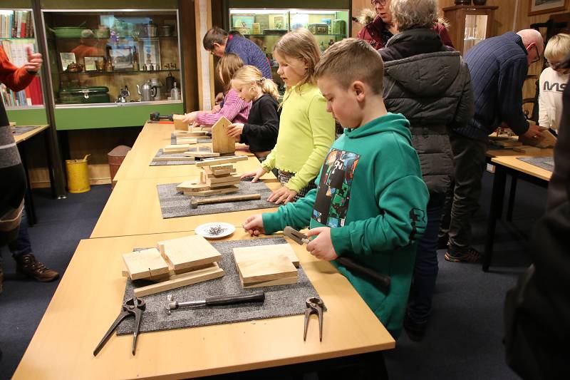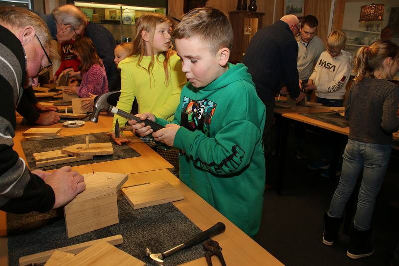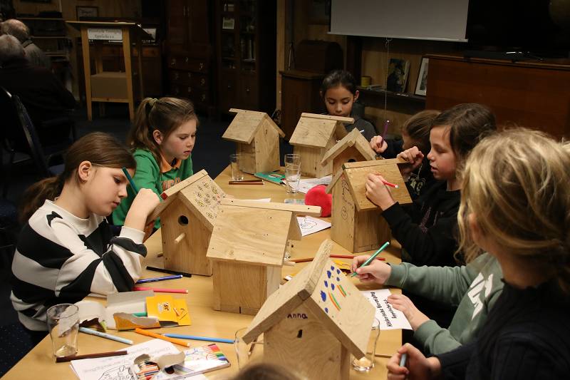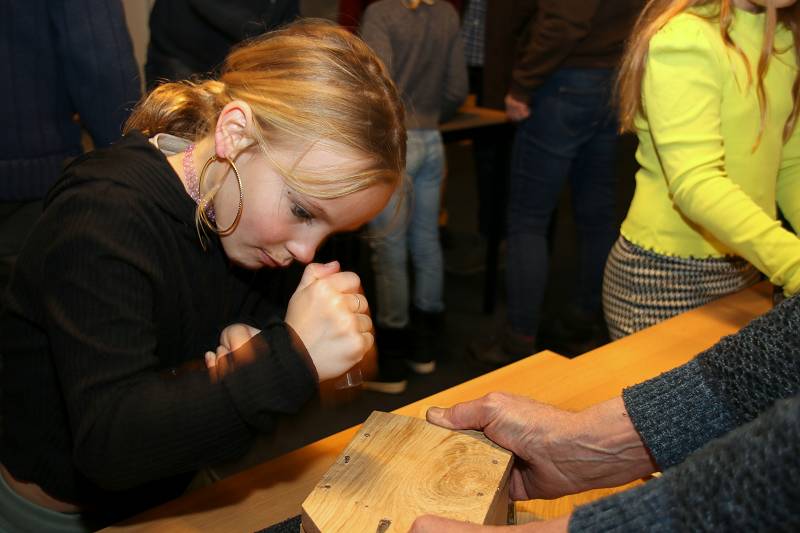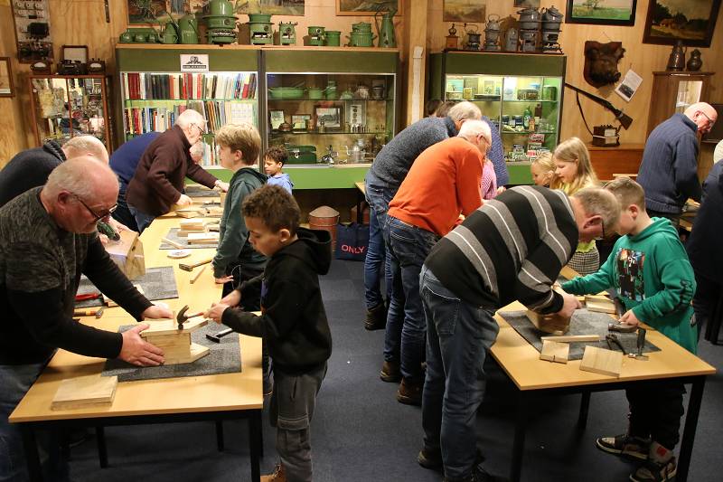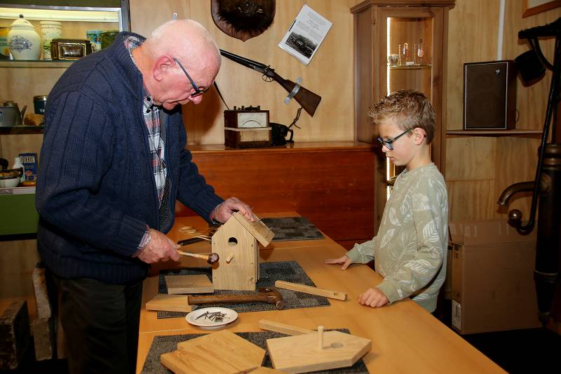 | 25 kinderen kwamen zaterdagmiddag vogelhuisjes bouwen in de Hoolten Klinte. Ze werden daarbij geholpen door leden van de historische vereniging, na veel getimmer waren de vogelhuisjes klaar en werden er nog en werden ze verder met opgeleukt met stickers en gekleurd met stiften. Na dit alles kreeg iedereen een glaasje ranja. |